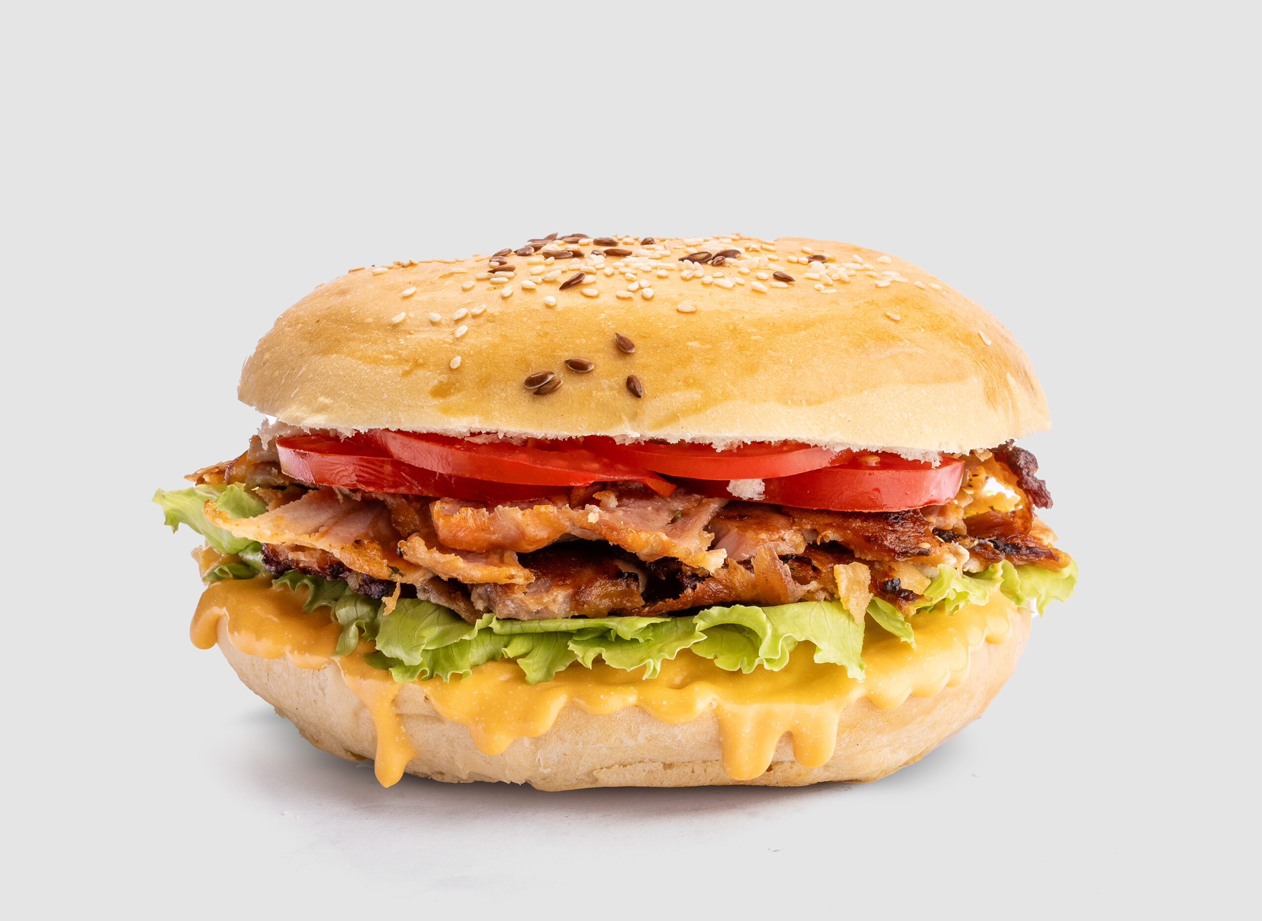 jégsláta, zsemle, kebab hús, paradicsom, olvasztott cheddar sajt, sültkrumpli