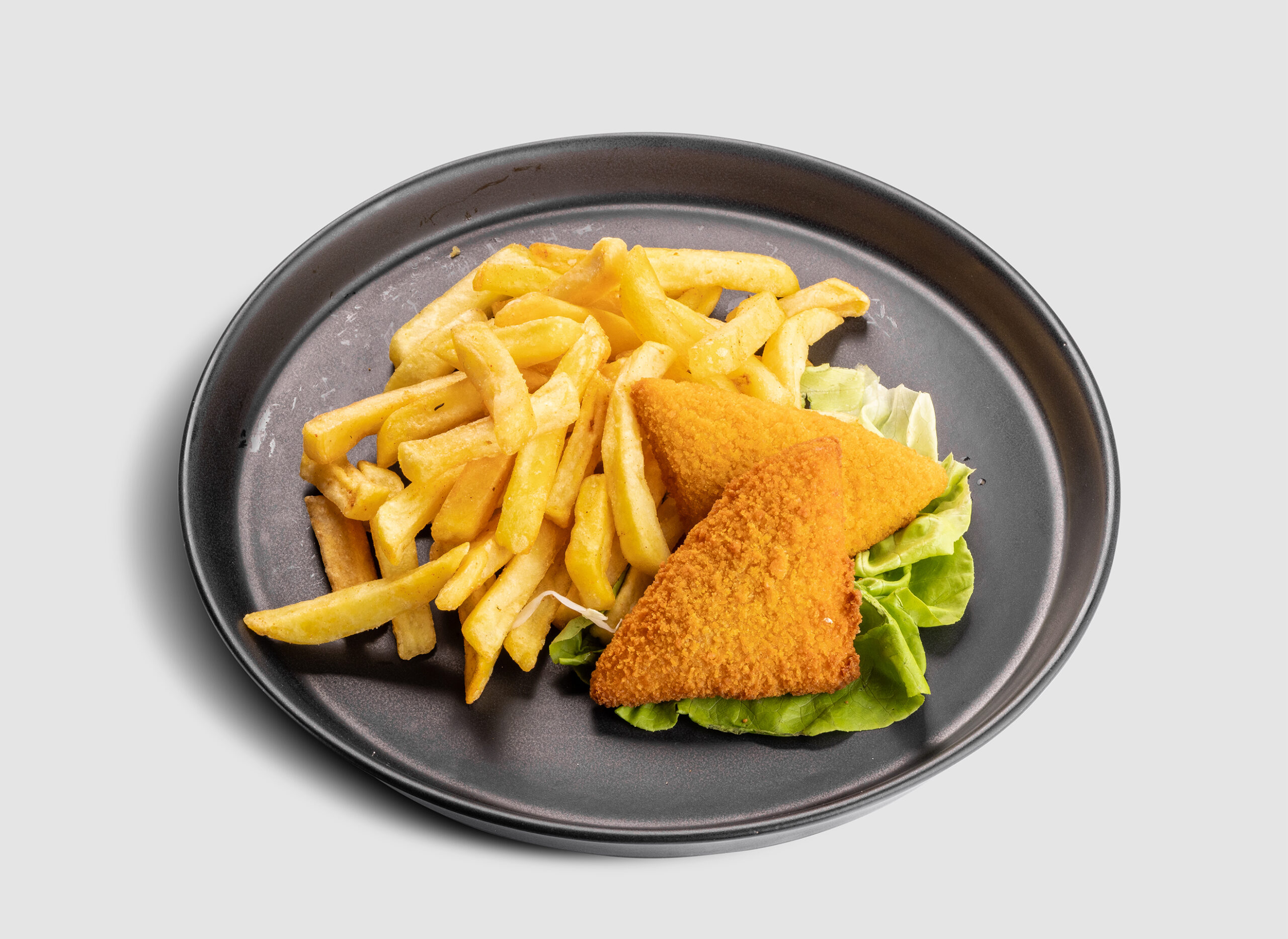 100 gr rántott sajt, 154 gr sült burgonya, 66 gr választható szósz