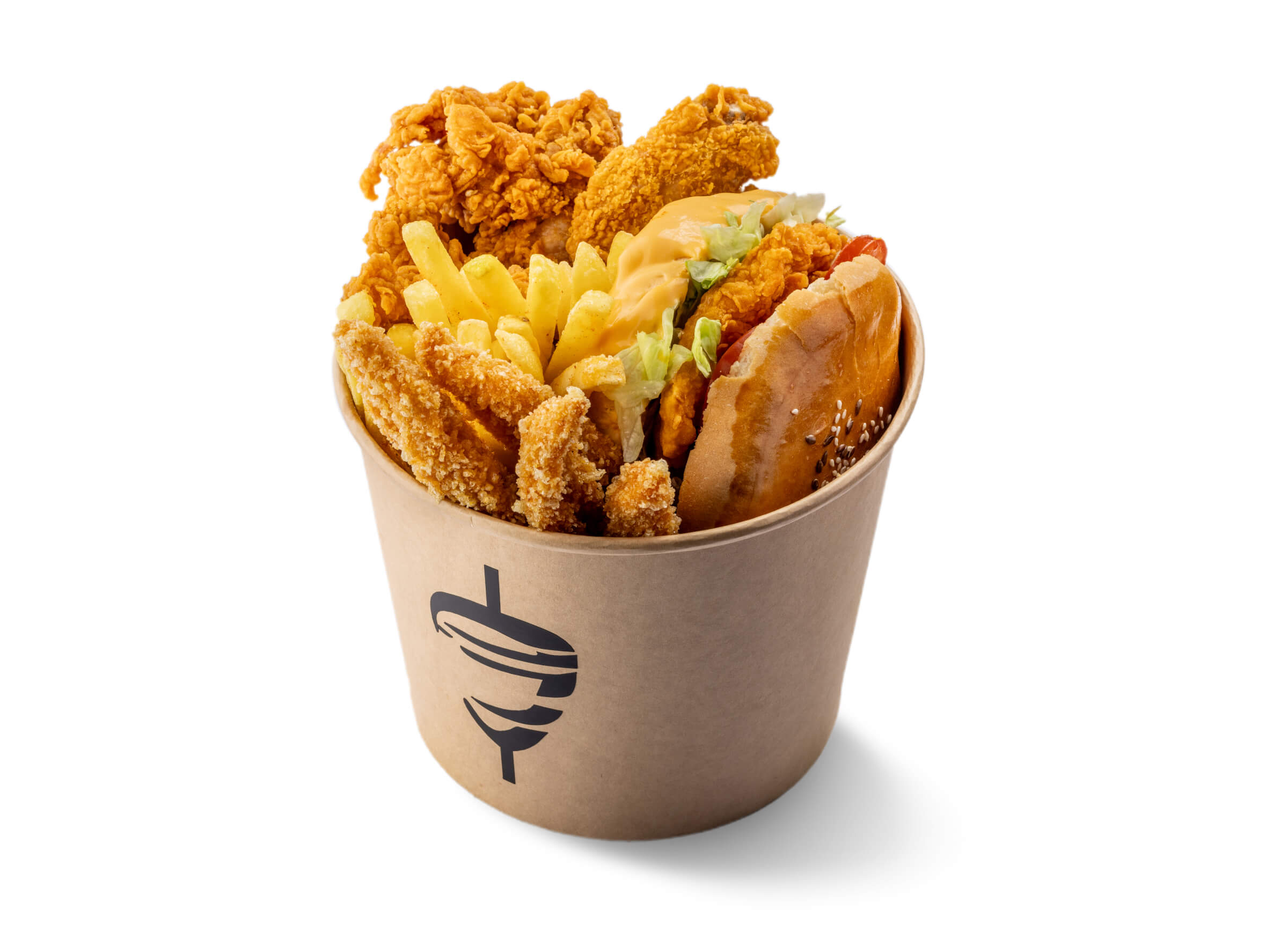 Kentucky Burger, aripioare de pui, crispy, cartofi prăjiți, sos la alegere